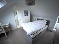 Bright, fully furnished loft room with its own private floor and ensuite, in a friendly shared house.