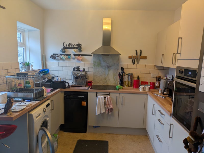 Shared downstairs bathroom with shower and bath. Large open plan kitchen diner with proper coffee machine, lots of random appliances and access to a good sized garden. Any budding gardeners are welcome to grow stuff!