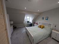 Large ensuite room with a king bed available in a lovely modern (just renovated) house in Windermere. The ensuite has a shower. The room is furnished with a wardrobe and plenty of storage. It has views over the Langdales, is a 10 min walk to the centre and 5 min drive to the lake.