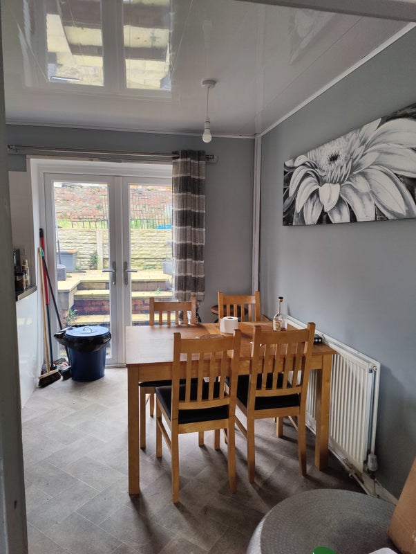 It's a beautiful furnished house with 2 bedrooms and one attic room. Double bedroom is available with large almira, doubl bed and table chair. Room is for 400 includes council tax and other utilities like water, electric, gas and wifi is shared between tenants which is extra (not included in 400). Common space has sofa, large tv. Kitchen has all amenities like fridge, washing machine, dryer, air fryer, oven, microwave etc. it's a quite house with working professionals, preferable female tenants.