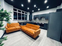 Each spacious bedroom is furnished with a double bed, desk, chair, and a 40" smart TV, ensuring comfort and privacy. The fully equipped kitchen features a washing machine, tumble dryer, kettle, toaster, and microwave-ideal for preparing group meals. The living room, with its cosy sofas and a 50" smart TV, provides a perfect place to unwind.