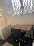 Bedroom is on 2nd floor, nice big window, and it has wardrobe, drawers, desk, chair and single bed. Also new mattress and just painted