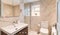 Shared bathroom, kitchen, and living area with a garden adjacent to the property.