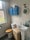 The bedroom has a double bed with high quality mattress, fitted wardrobe, chest of drawers, bedside table, bookcases, small desk (possibility to have a larger desk if you want) and a chair. Also some storage area.