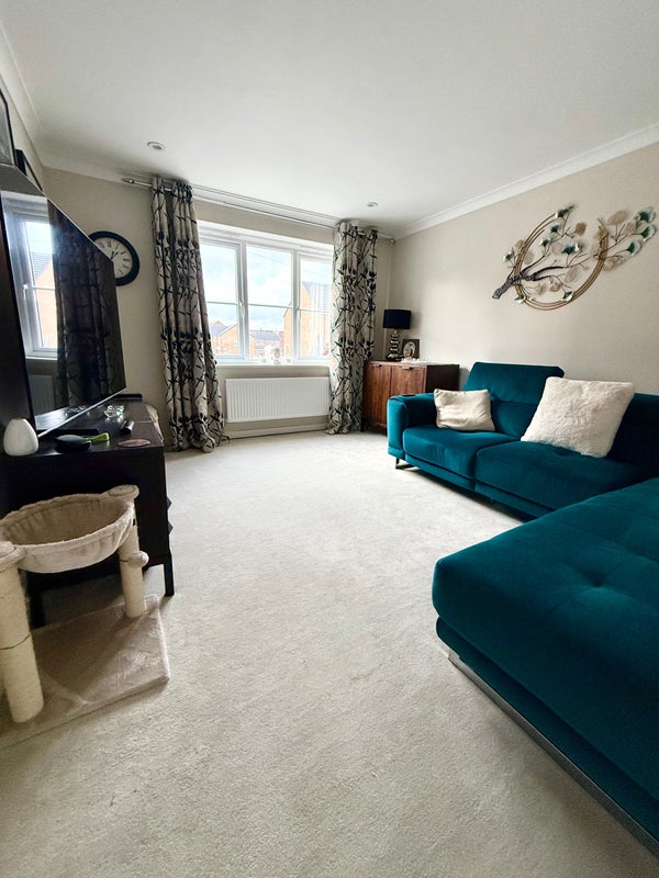 A modern new build detached house with off street parking, shared with a live in landlord and one cat.