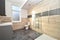 Recently renovated family bathroom with walk‑in shower, built‑in sink cabinet, W/C, and modern ventilation