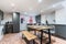 Contemporary and stylish kitchen with fitted appliances including cooker and washing machine.
