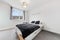 The separate modern kitchen is thoughtfully designed, featuring sleek high-gloss units, integrated appliances including an electric oven and hob and a fridge/freezer, along with ample worktop space for everyday living. There is a large utility cupboard just off the lounge with plumbing for a washing machine and handy shelving allowing for ample storage.