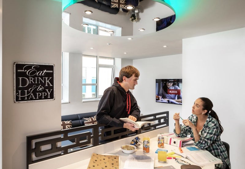 Study Inn’ Leeds Gold Plus student rooms are located on the much sought-after top floor of the building and come complete with en-suite bathroom, work desk, wardrobe, and a comfy bed.