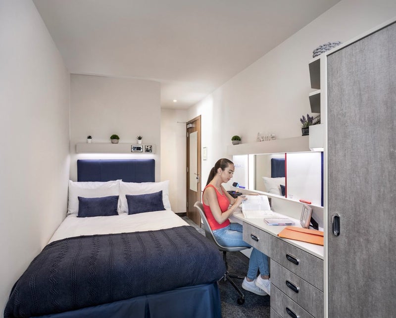 Study Inn are proud to present these luxurious 5 to 8 en-suite Diamond en-suite bedroom apartments in Leeds city centre. The Diamond en-suite rooms are larger than the Platinum student rooms and come complete with en-suite bathroom, spacious work desk, large wardrobe, and a comfy double bed.