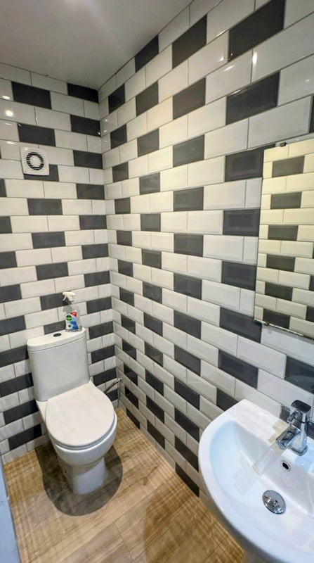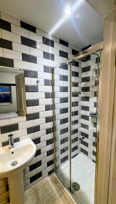 Double room with Ensuite shower, toilet and sink. Fitted wardrobe and Double bed. Additional shared facilities include a large shared kitchen on ground floor with plenty of storage space, Fridges and Freezers. Additional laundry room in the cellar with Washing Machines and Dryers.