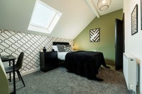 Bright, modern double rooms with wardrobe space, drawers, bedside table, desk & chair, plus under-bed storage. Comfortable bed for a great night’s sleep. Shared access to 2 toilets & 2 showers.