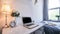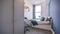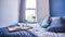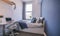 The double bedroom is on the 1st floor at the front of the house. It has a gorgeous blue statement wall, built in large wardrobe and desk.