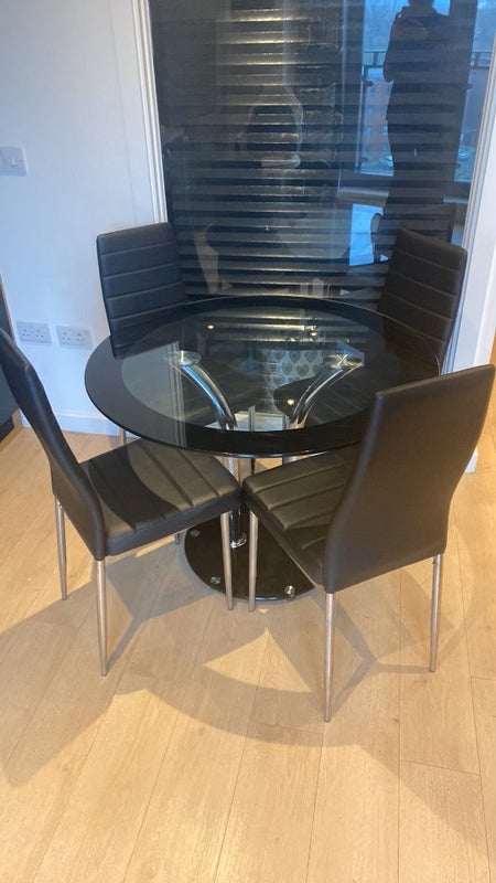 In the living area space it has table with two chairs for dining and large sofa for unwinding after a long day.