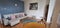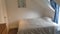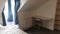 - A top-floor double room with a built-in wardrobe, bed, desk, chair, and a large set of drawers.