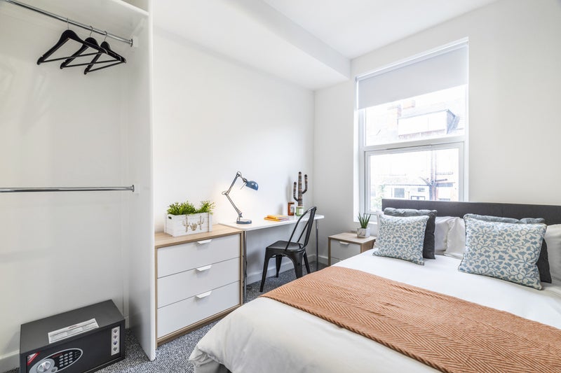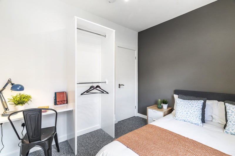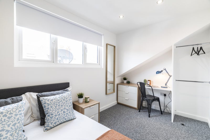 All our rooms are fully furnished and include a double bed, wardrobe, chest of draws, bed side table, full length mirror, desk.