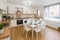 The spacious kitchen and dining area is designed for modern student life, equipped with a large fridge-freezer, washing machine, dishwasher, microwave, and dining table with chairs. The separate lounge offers a comfortable space for relaxing or socialising with housemates.