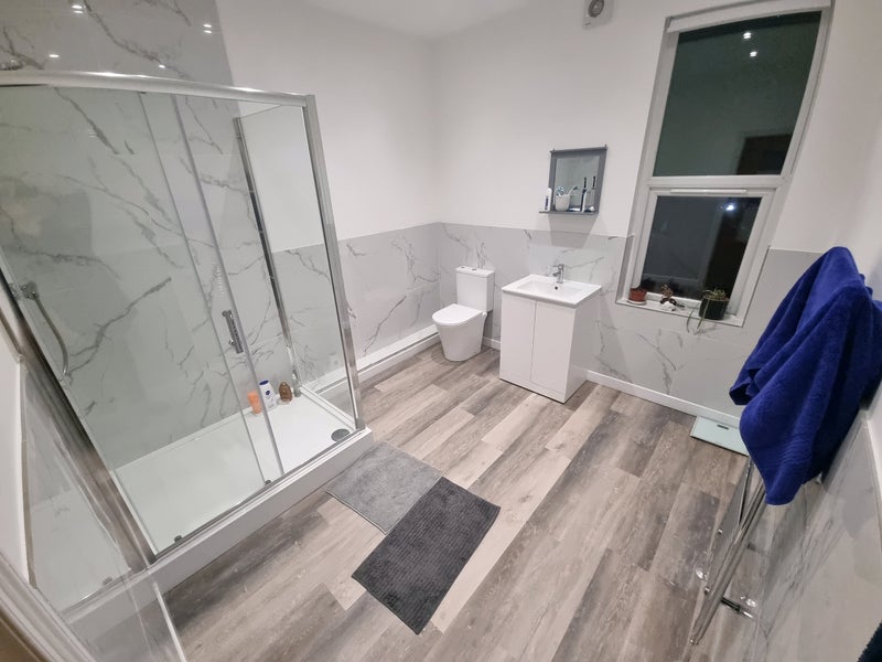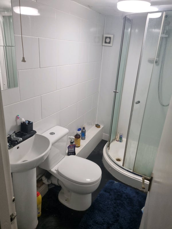 3 bathrooms with showers, including one just opposite the room. Seperate kitchen & living room area.