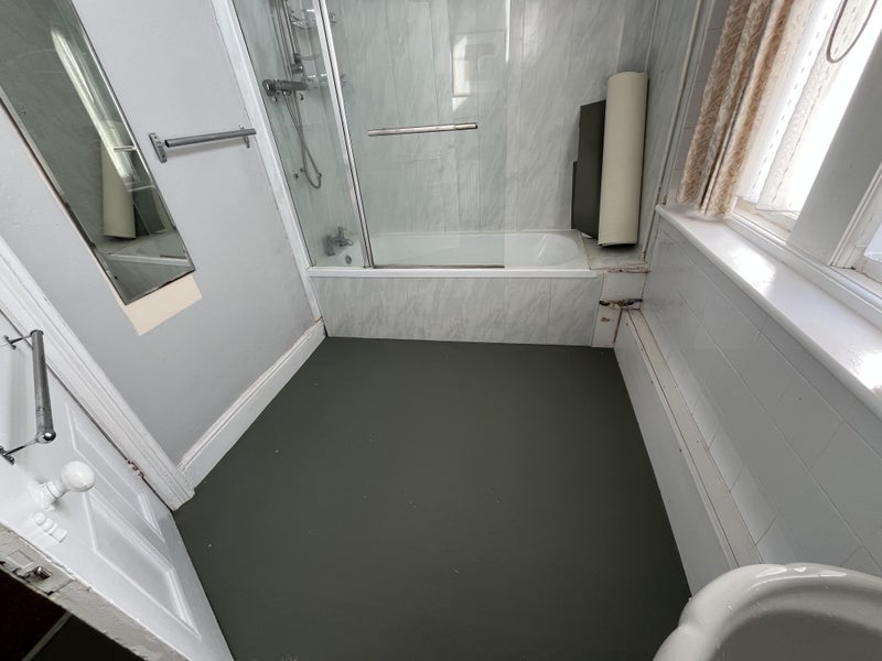 Bathroom with bath and gas shower over and separate toilet on 1st floor