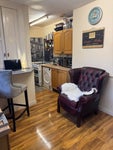 Any kind of smoking or vaping is NOT permitted upstairs. BUT there is a well vented corner and the kitchen and front and back yard for that.