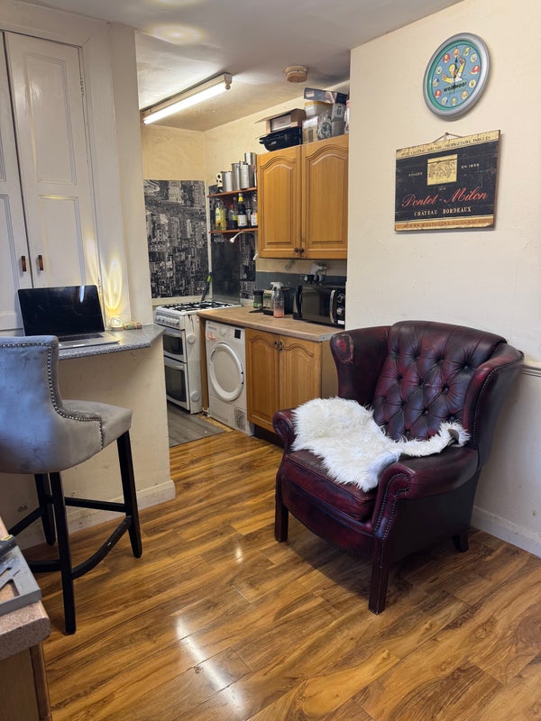 The idea was to live along retro/vintage style kitchen and bathroom, and concentrate on personal and career development. Redecoration of walls is possible.