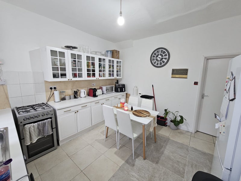 While there isn’t a separate living room, the kitchen is a generous size with a dining table, making it a comfortable shared space for meals and socialising.