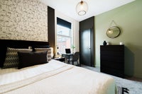 Bright, modern double rooms with wardrobe space, drawers, bedside table, desk & chair, plus under-bed storage. Comfortable bed for a great night’s sleep. Shared access to 2 toilets & 2 showers.