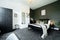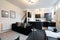 - open plan ground floor with matt black modern kitchen & living/dining area
