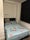 The bedroom is fully furnished to an and includes a double bed, wardrobe and a desk.