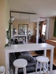 The bedroom can be divided to feel like 2 rooms, such as bedroom & lounge, or bedroom & office.