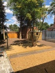 Trees and singing birds at the back of the garden.