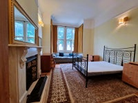 A massive double room is now available on the first floor of a charming Victorian house, featuring very high ceilings, an abundance of natural light, and multiple large windows that create a bright and airy atmosphere.