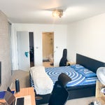 A large, bright, spacious beautifully lit fully furnished master bedroom with private bathroom in 2BHK, 2 bathroom flat on the 23rd floor of Unex Tower, Stratford.