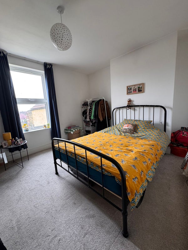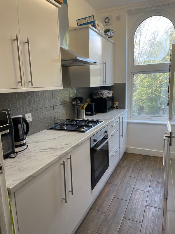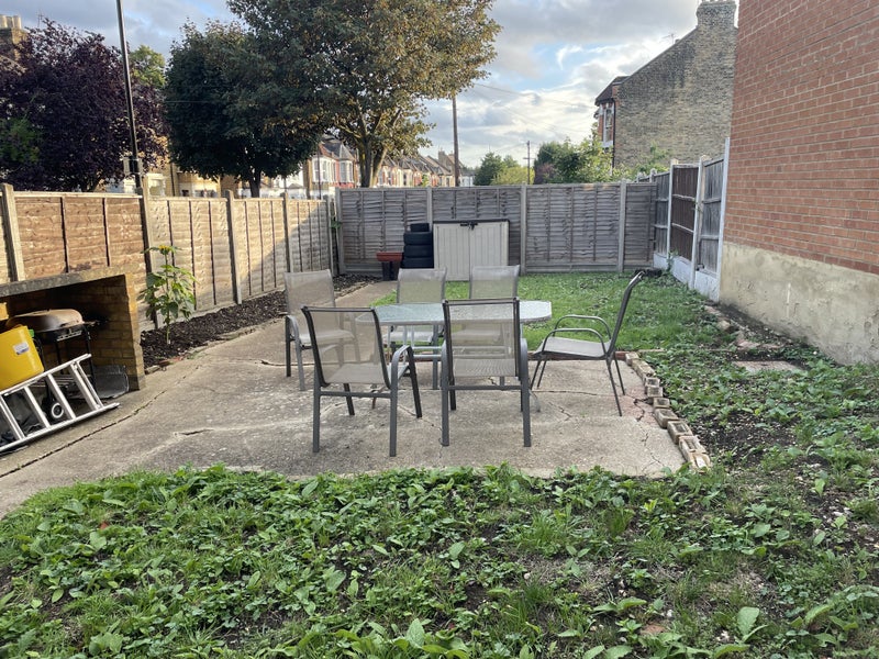 The room is a large double at the back of the flat overlooking the garden. The flat was newly renovated when we moved in 2.5 years ago. Large living room, new kitchen, 1 bathroom and we also have another toilet. Large garden with table chairs and a BBQ.
