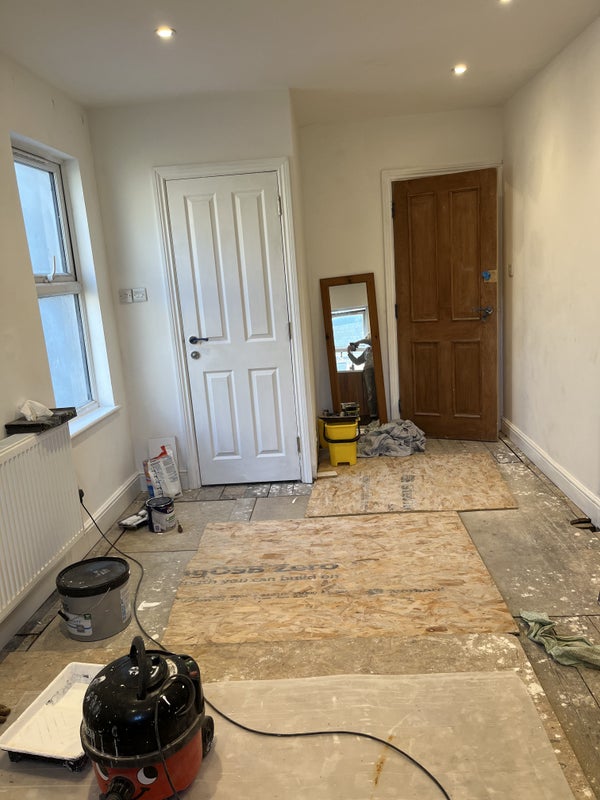Here is my studio room which is nearly finished. Apologies for the photos as the flooring is yet to be laid, and a few woodwork finishes in the shower room and elsewhere. The oven needs to be fitted, and other appliances. And kitchen tiling in progress.