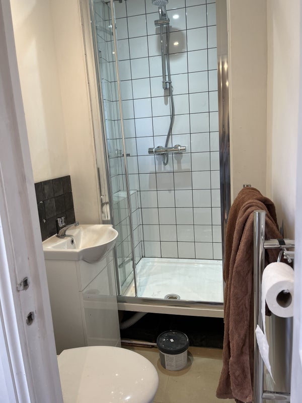 The shower is a decent size, toilet and separate basin. Electric towel warmer. Central heating with a new boiler.