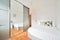 Shared bathroom with shower and full-sized bathtub