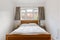 On the right side of the flat you'll find the bathroom — with a bathtub — and the bedroom, which has a double bed with an Emma mattress.