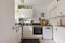 Coming in, the kitchen is on your left — it's got everything you need: stove, oven, toaster, kettle, cafetière and french press. No microwave, coffee machine or dishwasher, just to flag. Help yourself to any utensils or condiments you find in there.