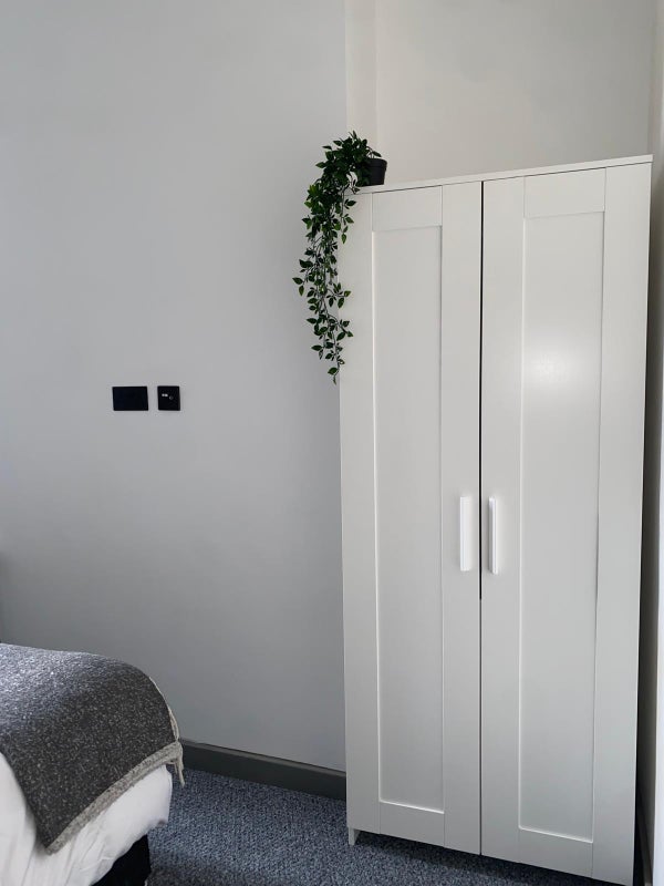 • Double Bedroom: The room comes with a double bed, desk, chair, and chest of draws