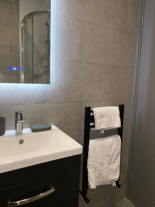 • 2 stylish bathrooms, each with dual Mira showers (rain head + normal), sensor mirrors with demist, quality fixtures.