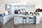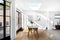 There is a modern kitchen, with all mod cons including a coffee machine/grinder and soda maker, as well as a living area with a large dining table and corner sofa.