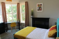 The spacious double room comes fully furnished with a double bed, wardrobe, chest of drawers, bedside cabinet, and a private fridge freezer. However, it's worth noting that there is a caution about low ceiling height.