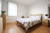 The spacious double room comes fully furnished with a double bed, wardrobe, chest of drawers, bedside cabinet, and a private fridge freezer.