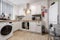 Kitchen with built in appliances plus washer/dryer machine.
