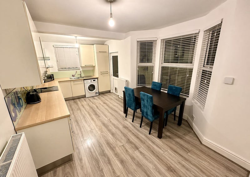 Shared Kitchen with Dining Table, Oven, Large Fridge Freezer, Washing Machine, Toaster and Microwave. Lots of storage.