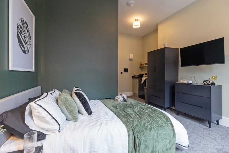 All rooms consist of; double bed, wardrobe, chest of drawers, bedside table, armchair, tea making facility unit, wall hung mirror, wall hung TV, intercom system & en-suite. Individual Wi-Fi access points in each room with your own dedicated bandwidth allowance