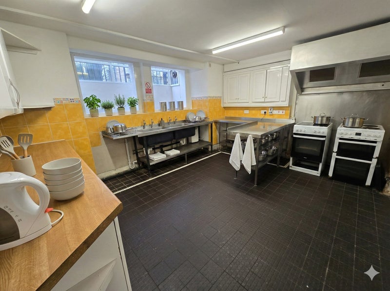 We also have two kitchens you can use. The basement (larger) kitchen area has 8 hobs and two grills/ovens, 2 x microwaves and is stocked with plates, cups, cutlery, pans etc.
