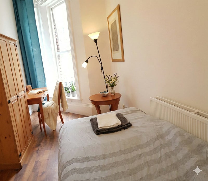 Our spacious, well appointed double rooms benefits from en-suite toilet and sink, desk and chair, TV, access to shared kitchens (x2) and off street, onsite parking.
