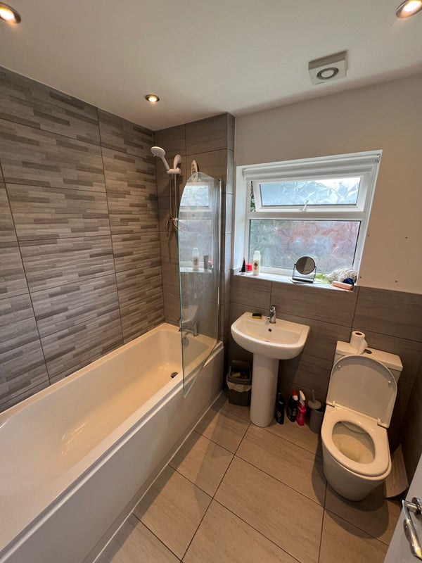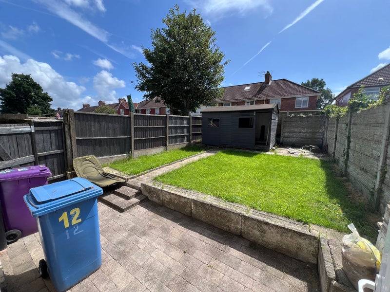rear garden with cctv covering the front of the house , there are three men at the house all working professionals , looking for working , clean respectful people only please , one months rent up front of £460 is required which serves as the final months rent , and a £100 deposit which will be held within a protection scheme